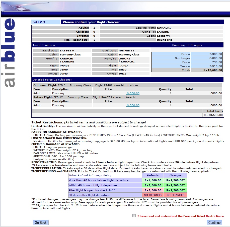 PIA reservation site…it’s Rs 13300 ONE way without taxes for feb 1 to feb 21 and the total at the bottom shows Rs 35225 and that’s the** LOWEST fare** available.