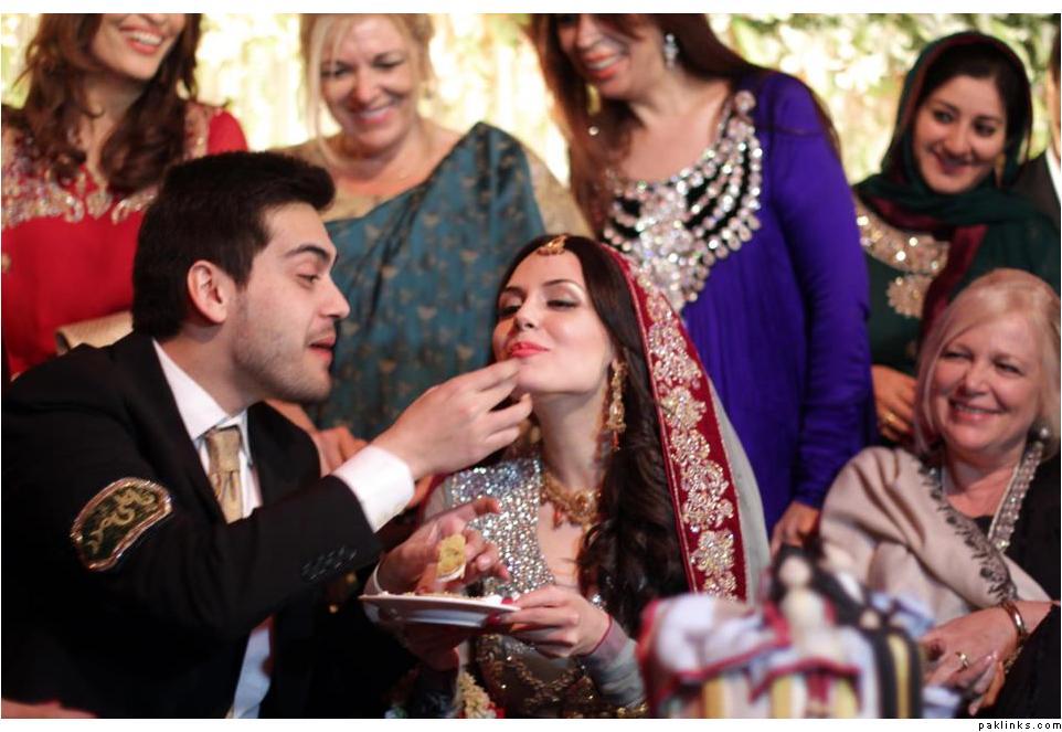 l love how in celebrity weddings, you rarely see the bride crying, she's always relaxed and having fun. Look at Maria B, Vaneeza Ahmed, even half the bollywood actreses, they always look so happy! And it's the same in this picture, there's no stiff poses, Aisha looks really happy and like she's having fun.