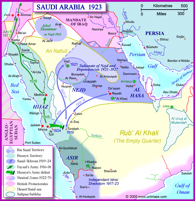 The evasion of this early understanding of the term in order to exclude Najd, as usually understood, from the purport of the hadith of Najd, has required considerable ingenuity from pro-Najdi writers in the present day. Some apologists attempt to conflate this hadith with a group of other hadiths which associate the ‘devil’s horn’ with ‘the East’, which is supposedly a generic reference to Iraq. While it is true that some late-medieval commentaries also incline to this view, modern geographical knowledge clearly rules it out. Even the briefest glimpse at a modern atlas will show that a straight line drawn to the east of al-Madina al-Munawwara does not pass anywhere near Iraq, but passes some distance to the south of Riyadh; that is to say, through the exact centre of Najd. The hadiths which speak of ‘the East’ in this context hence support the view that Najd is indicated, not Iraq.