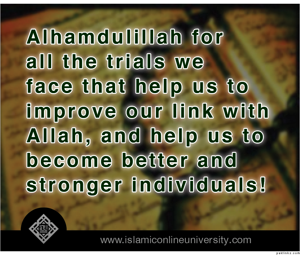 Alhamdulillah for all the trials we face that help us to improve our link with Allah, and help us to become better and stronger individuals