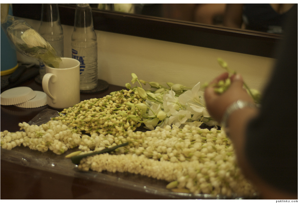 I love long hair and it was fun to have those updos. Dolled up for the first time in my life, I didn’t want to put down my hair at all. They do put in extentensions if the bride has short hair but the added weight just brings on a headache. It would be good to have bit of a length and healthy hair. The high updo is necessary as it has to bear the weight of the dupatta. I only regret the fact that I did not put in a fancy hair accessory. I love them but but couldn’t find a decent one at that time. I did get to put in flowers.
