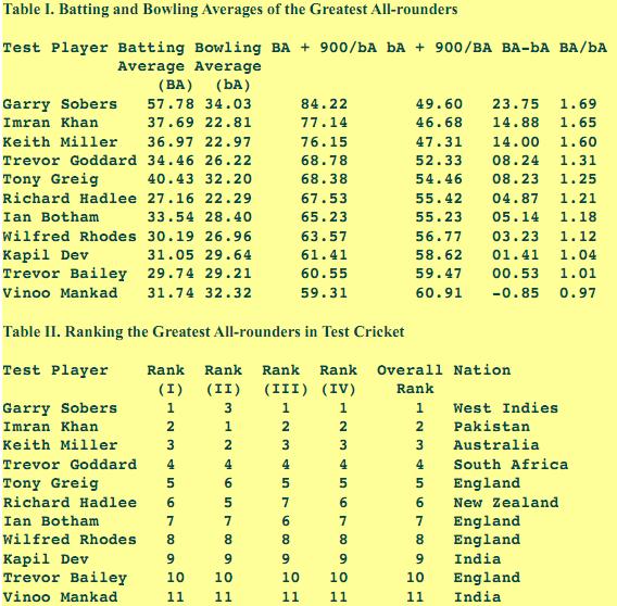 Table I. Batting and Bowling Averages of the Greatest All-rounders