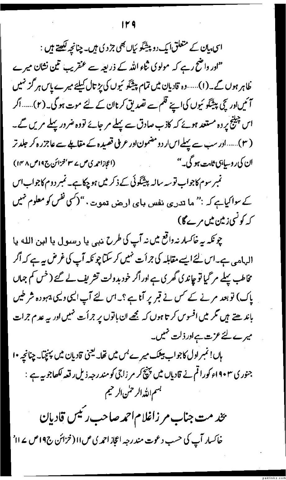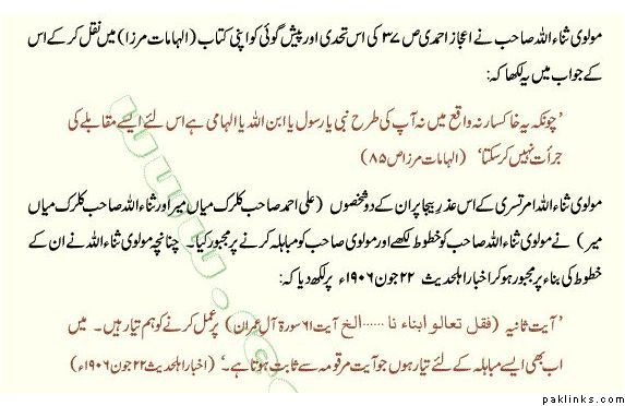 Read the whole thing to know what happened. Even the 'actual scanned image' showed that maulvi sahib dreaded mubahila challenege and declined it. That was in 1902 in response to Promised Mesiah 's 'Eijaz-e-Ahmadi' (Annexure to book 'Nazool-e-Mesiah').
