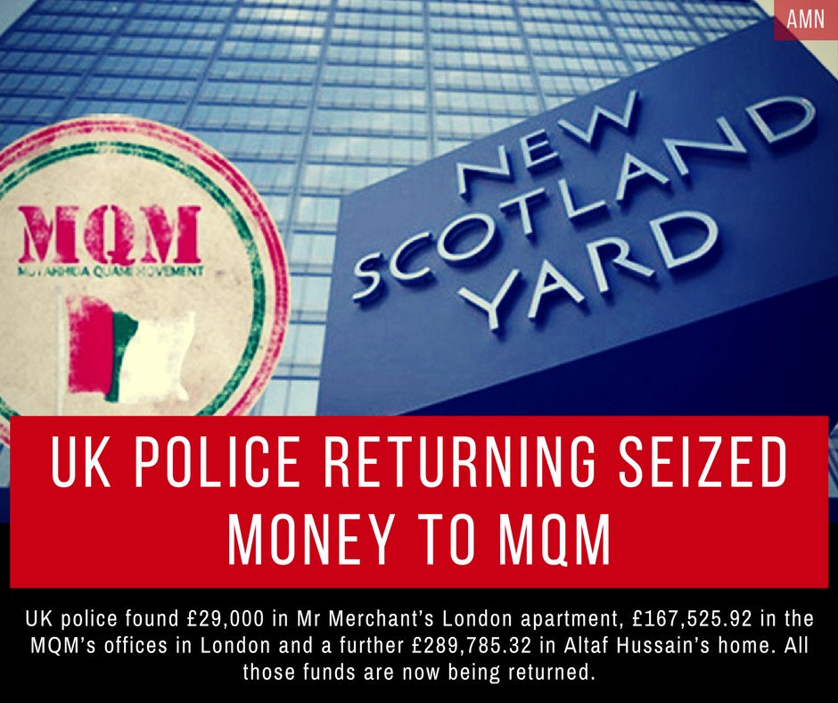 UK police in the process of transferring nearly half a million pounds to Altaf Hussain, the MQM and Sarfraz Merchant.