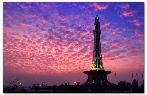 Minar-e-Pakistan is a tall minaret in Iqbal Park Lahore, built in commemoration of the Pakistan Resolution. The monument attracts visitors from all over Pakistan, as well as the inhabitants of the Walled City of Lahore. The large public space around the monument is commonly used for political and public meetings, whereas Iqbal Park area is popular among kite-flyers