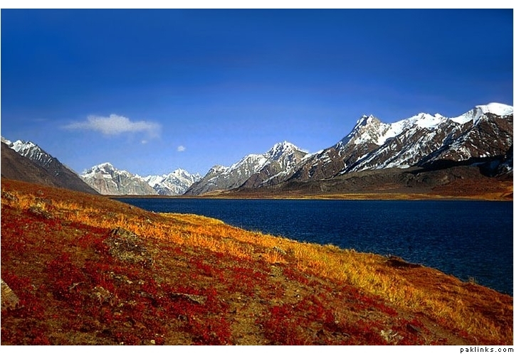 Karambar Pass marks the boundary between the Chitral and Ishkoman Districts of Pakistan. The Karmabar Lake is almost 3 km long approx and it is 4300 meters above sea level. The flowers of autumns are worth seeing on this lake.