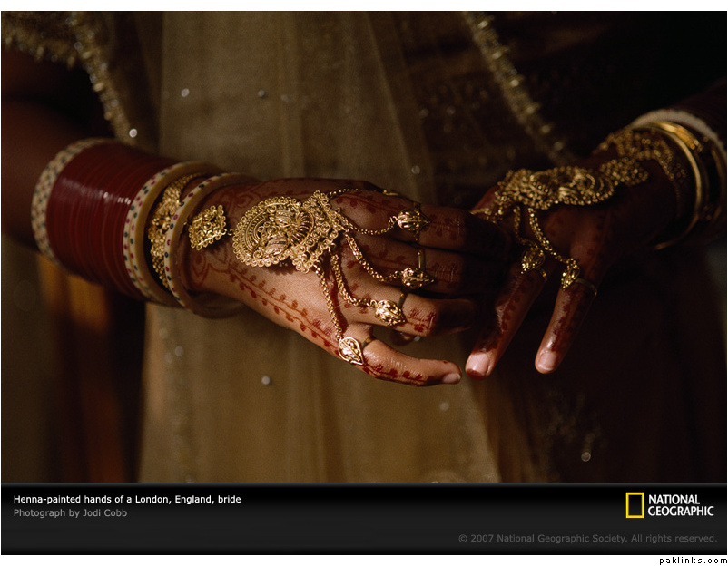 Henna-painted hands of a bride, London, England