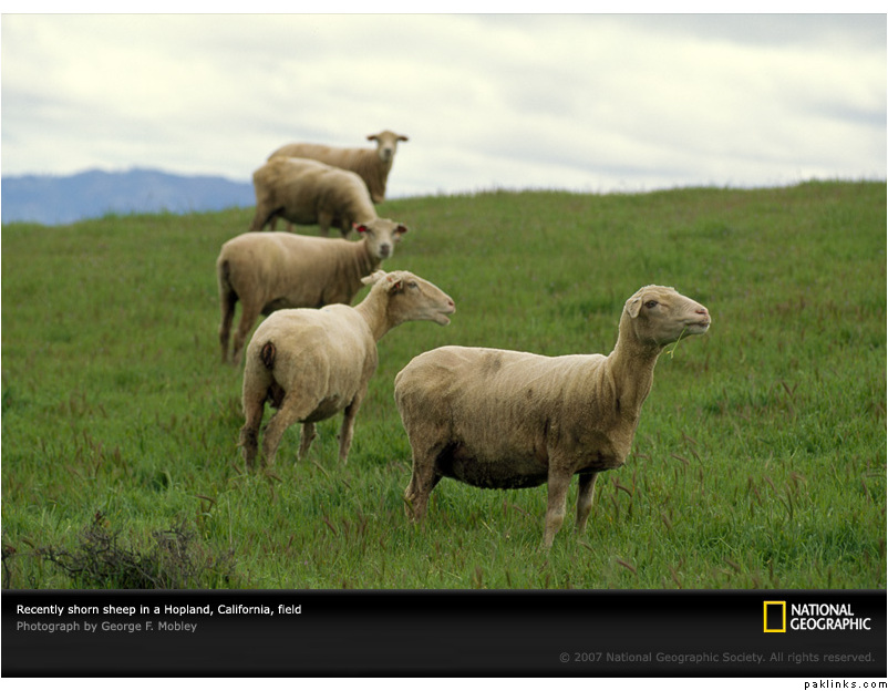 Recently shorn sheep in a Hopland field, California