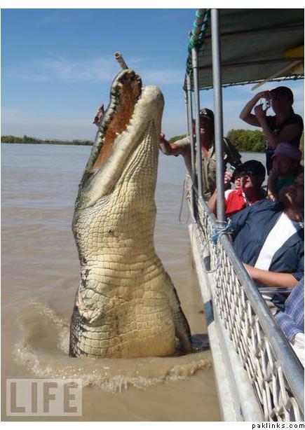Brutus, an 18-foot-long saltwater crocodile, rises like a nightmare of mythic proportions from Australia’s Adelaide River, lunging for the buffalo meat offered up by cruise operators. (Note that Brutus is missing a front leg – lost years ago, according to local legend, in a shark attack.)