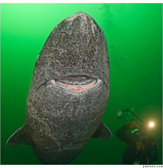 A diver swims alongside a Greenland shark, a rarely-seen species that looks like it has been etched from stone. They can survive for more than 200 years at depths of up to 600 metres under Arctic ice. They grow to 23-feet long and are so fearsome they have even been known to eat polar bears. Photographer Doug Perrine captured the elusive creatures when they ventured in to the warmer waters of the St Lawrence River, in North America. He said: “These sharks were very placid and curious. They are much calmer than other sharks; they have an almost goofy, comical appearance. The sharks are known to prey on large seals but I never felt threatened.”