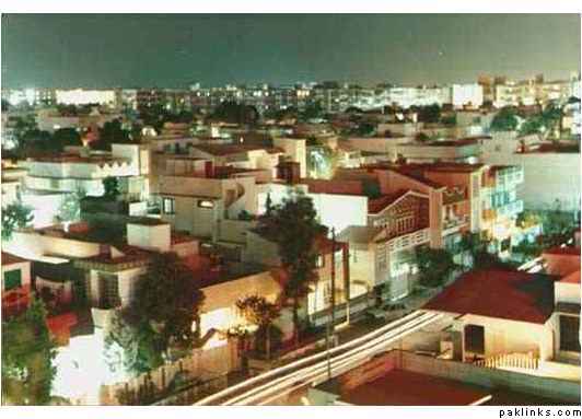 This was taken from our apartment complex in Gulshan-e-Iqbal at about 9.30 pm. The camera was a film camera (Voigtlander) and no tripod was used. FYI, the lines on the street are cars passing by during the 30+ second exposure: