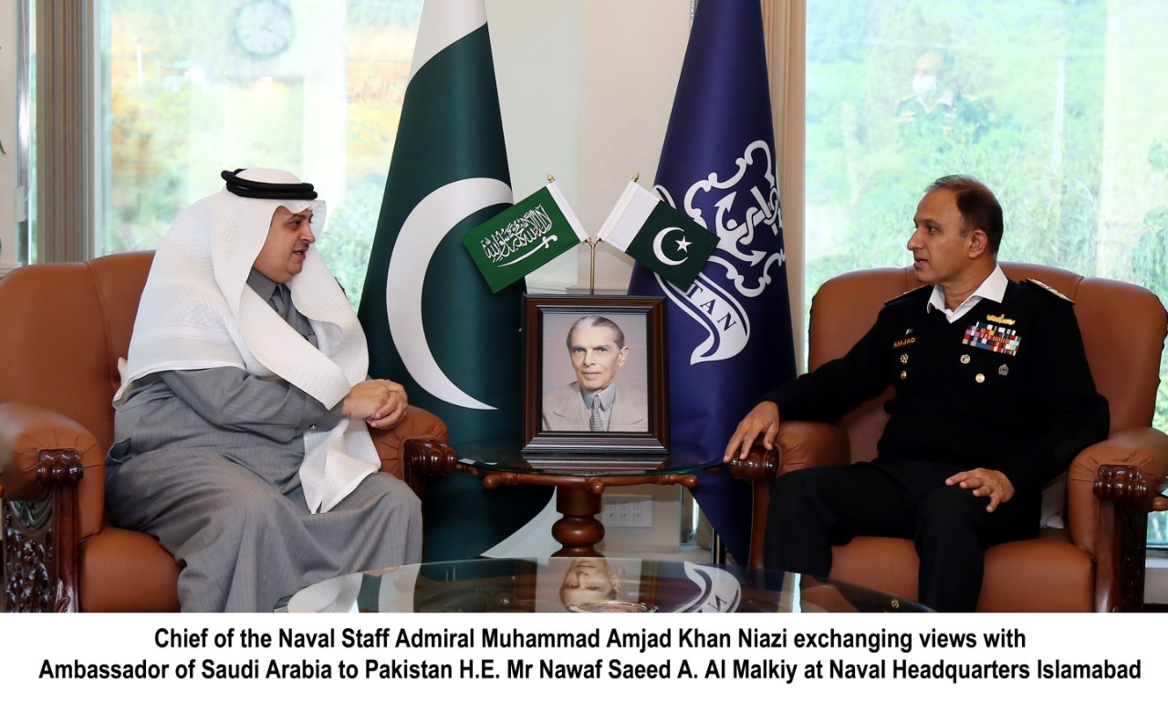 Ambassador of Saudi Arabia to Pakistan calls on Pakistan Navy CNS at NHQ Islamabad