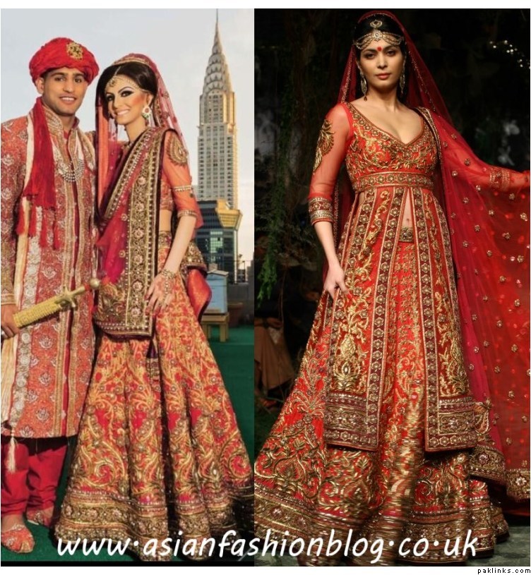 (I blogged about this back in Feb when she tweeted it, the same lehnga with a different top was featured in Tarun Tahiliani’s Indian Bridal Week collection in September last year - see more pics from that collection here)