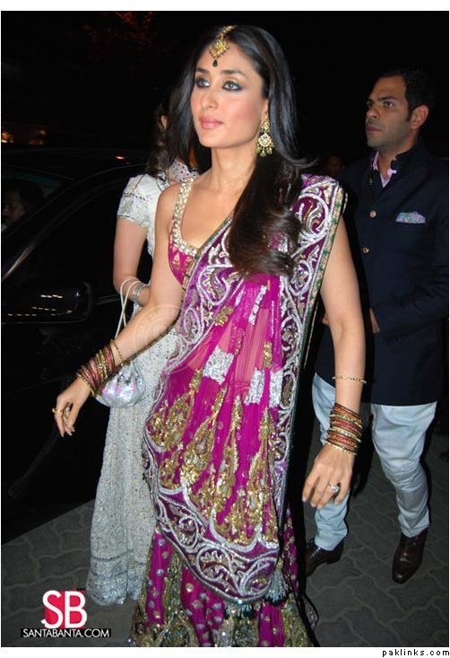 KAreena is soo dressed up in comparison to the rest. She is soooo stealing the bride's thunder. But then again, I can't blame her b/c Amrita is not even wearing a teeka. She should have done SOMETHING to standout from the crowd. I think Malaika has toned her look down enough to not look like she is the bride. But I must say, Kareena by far, looks the prettiest...despite being over dressed.