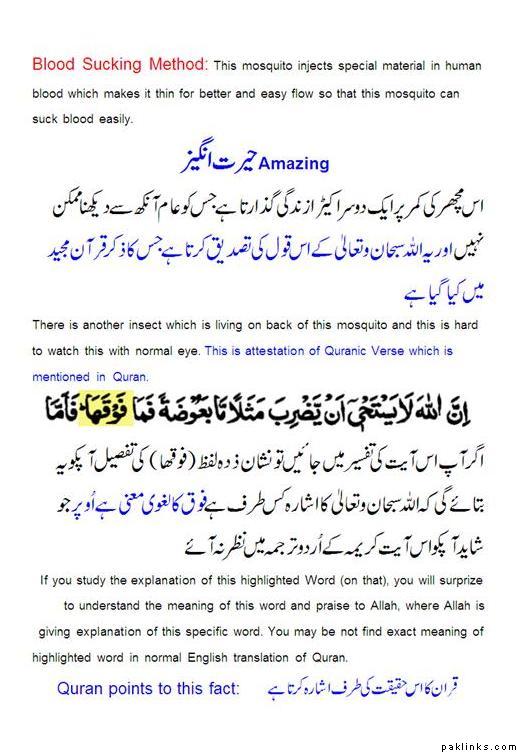 @Zapatista; i remember that thread. Rest about mosquito, yupe i didn't searched info about it as it wasn't point of view but the Ayat's indication towards the smallest living things (parasite).