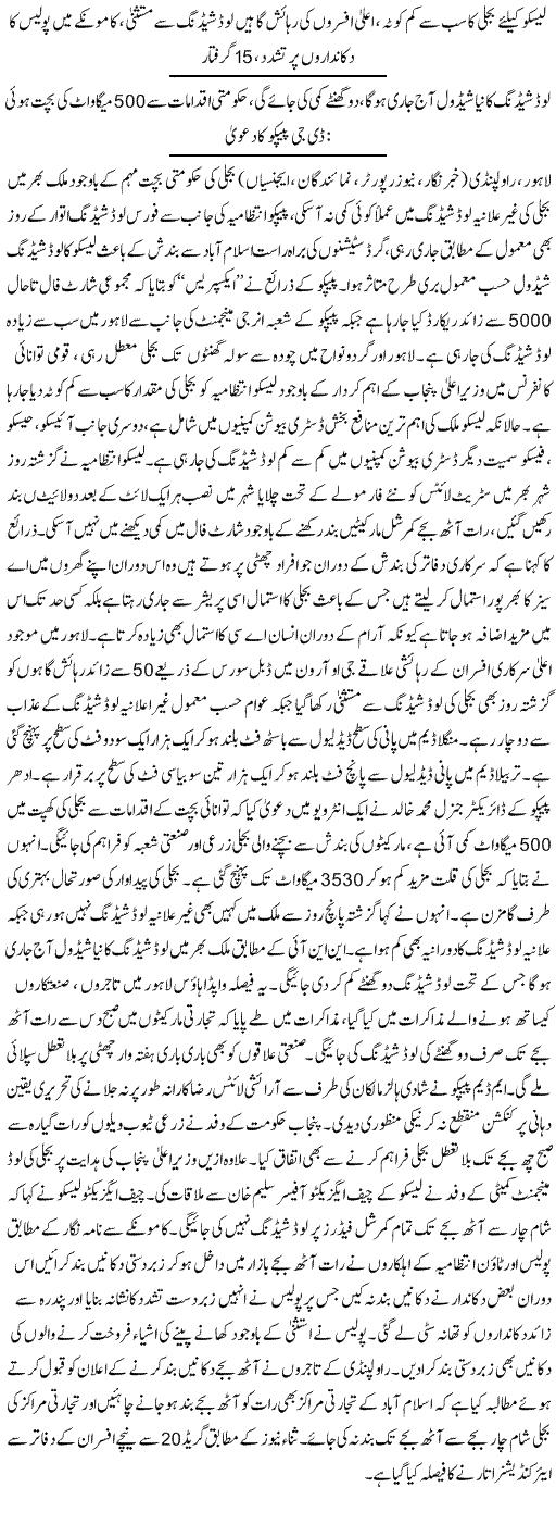 Poor Shopkeepers are beaten up and arrested, common man is suffering from Power cuts, Industries are downsizing as their production level has gone down but the GOR has the famour “Istashna” from power-cuts they can enjoy un-interrupted supply of electricity… yes the very officers who are the one the reasons that we common people are suffering are enjoying…