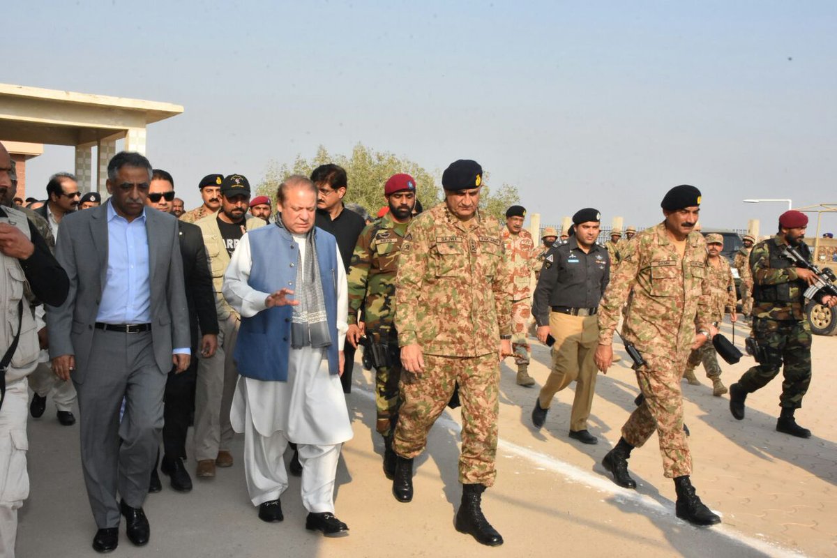PM Nawaz Sharif accompanied by Army Chief General Qamar Javed Bajwa, Governor Sindh Muhammad Zubair &CM Sindh Shah while visiting Sehwan.