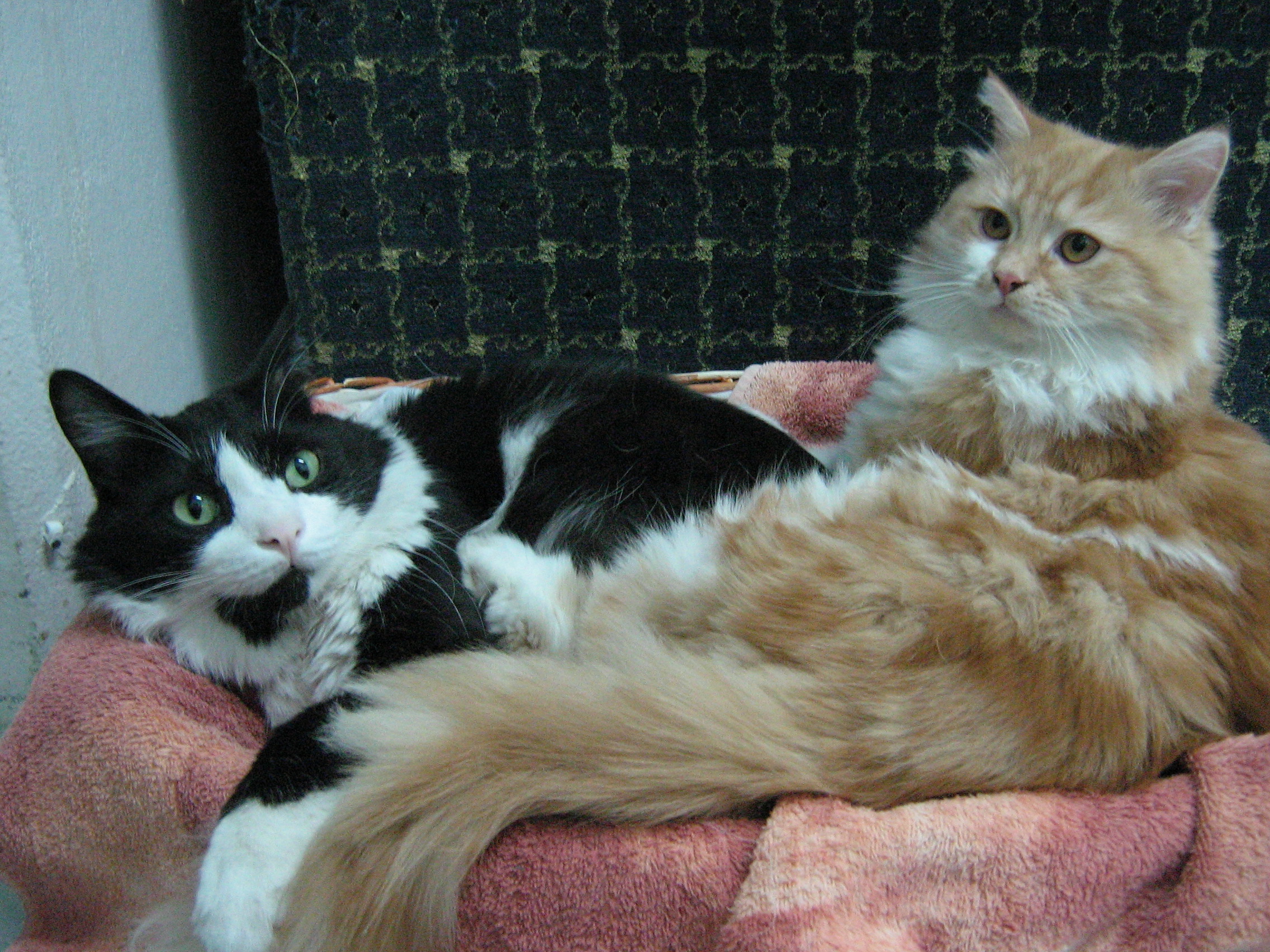 orange is “mushu”…abt a year old. got him couple of months ago. he was up for adoption.