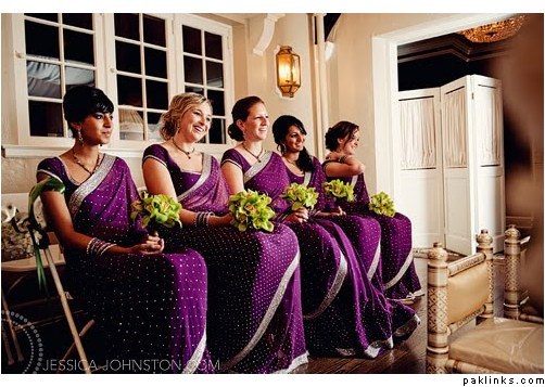 WOW! the saris look amazing...i LOVE the deep purple colour of the bridesmaids saris! and the brides is so elegant...thanks SGC.