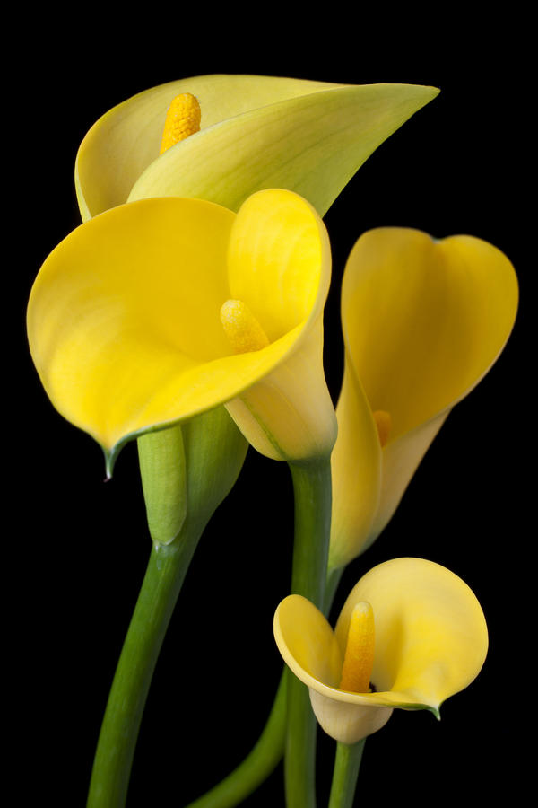 Four yellow calla lilies