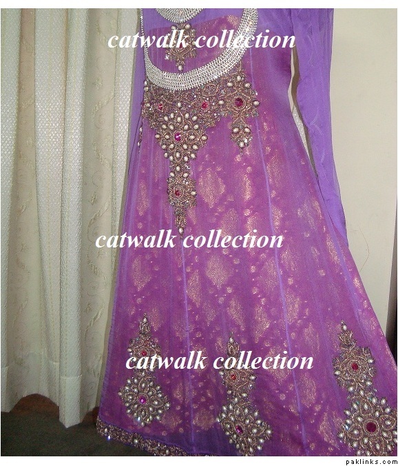And Voila! Heres what we made for a client (and since it was customized, there were some major changes in the style of the outfit). The price charged for this outfit for the client was Rs.28000, but this was made as a smaller hemline than a standard A-line dress. It still has the six motifs on the bottom, and can be made as shown in the original photo in a paneled style without increasing the price. However having a banarsi slip made will be an extra Rs.1500. Instead of having a banarsi slip made, I would suggest a chiffon slip with a spray of sequins made instead as that will be less busy and more streamlined.