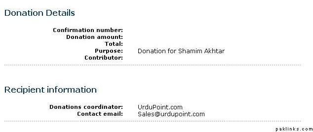 When you make a payment through paypal, it does specify the purpose as “Donation for Shamim Akhtar” and the payment will show up in your credit card as “URDUPOINT”. Paypal sounds safe.