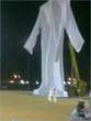 This was the idea of Hamdan with the help of 4 taylors. It took 18 days and 40 rolls of cloths were needed. The length of the garment is 29 meters: 9m between the shoulders, 12m width of the bottom, 10m length of the sleeves and 2m width of neck.