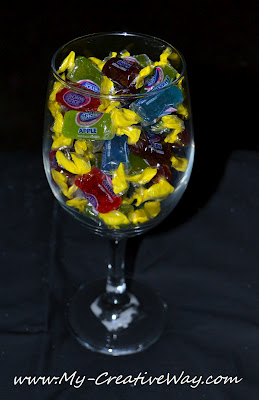 Fill your glass with candy leaving 1/4 of an inch empty at the top