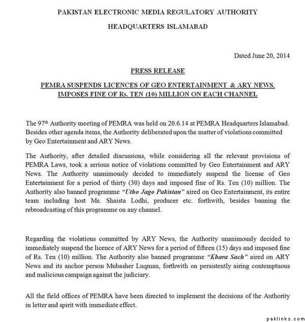 Ary new has been banned for 15 days with 1 crore rupee penalty for airing anti judiciary programs