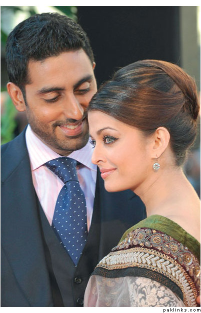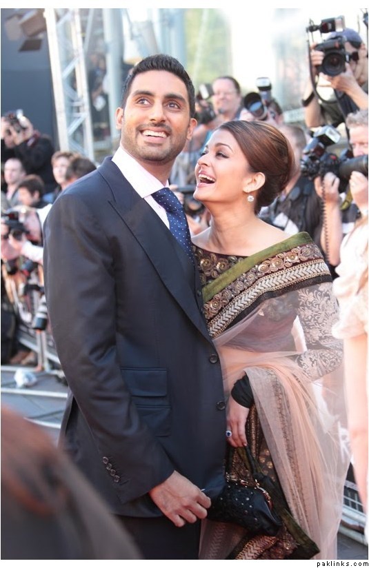 Abhishek was looking dapper in a pink shirt, dotted tie and jet black tuxedo, while Aishwarya looked elegant in a subdued Sabyasachi Mukherjee sari teamed with a heavily embroidered full-sleeved blouse.