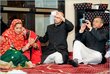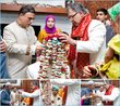 not sure what to think of for her outfit the next day - looks like she was wearing an american wedding dress and a desi style green coat over it.