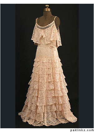 OMG!!! its drop dead gorgeous......is it a vintage chanel or a modern Karl Lagerfeld design??????? the soft pink is very typical of chanel, and the layers of chiffon is very 1920's flapper