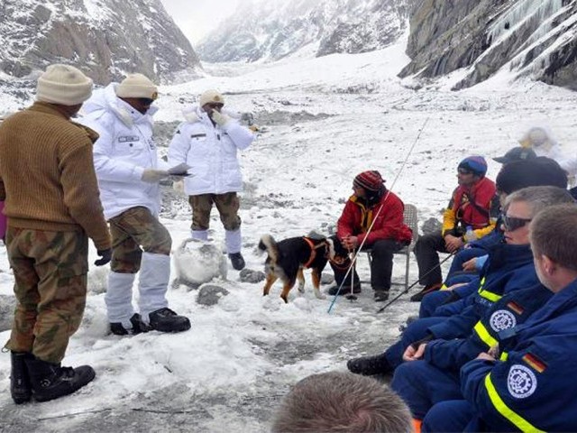 **SIACHEN: According to statement issued by the Inter-Service Public Relations (ISPR) on Thursday, in order to further aid the search and rescue operation, ground penetrating radars (GPR) along with experts have been sent to Gayari.**The Norwegian rescue team has carried out a survey of the area and is currently preparing a map for guidance.