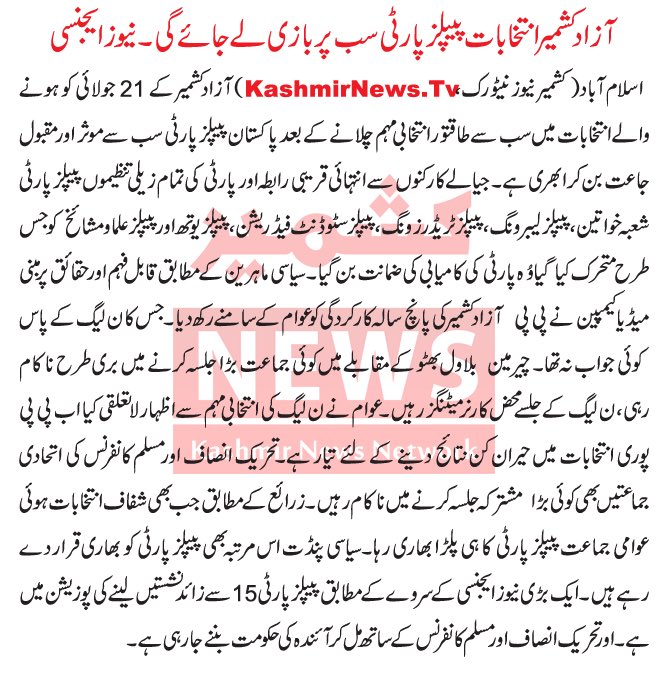 [RIGHT]آزادکشمیر میں پی پی اگلی حکومت کا حصہ ہو گی