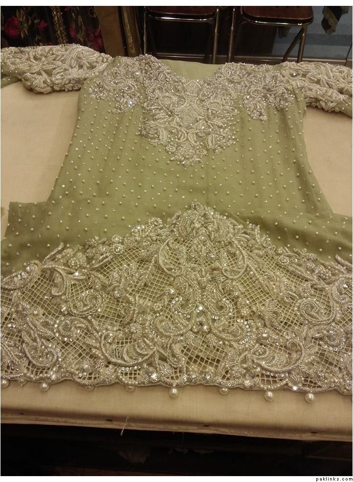 this is on silk net fully handworked as seen in pearl, crystal, zardozi, naqshi and wasli. sequince spray on duppata with a jamaver trim finish on all 4 sides. the back has a spray of pearls like in the front.