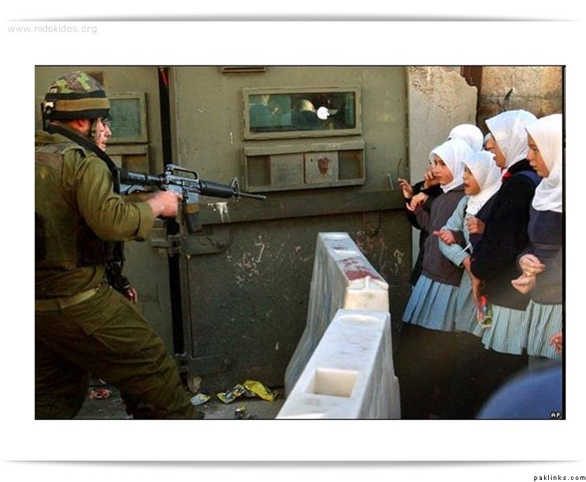 soldiers (probably talibans as i have heard that they dont like school education of galz) threatening innocent school galz by pointing guns towards them.