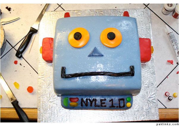 yeah, that's fondant on top of the robot cake. i made it from marshmallows so it tasted better than the store-bought one. you basically knead it like aata and then you work colour into it and keep kneading until its uniformly distributed. then you roll it out and drape it and shape it, etc. for your design.