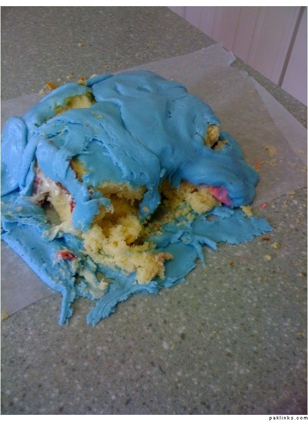 on the upside, the fondant does look good but you probably needed more powdered sugar to make it more like soft playdough and not all melty.