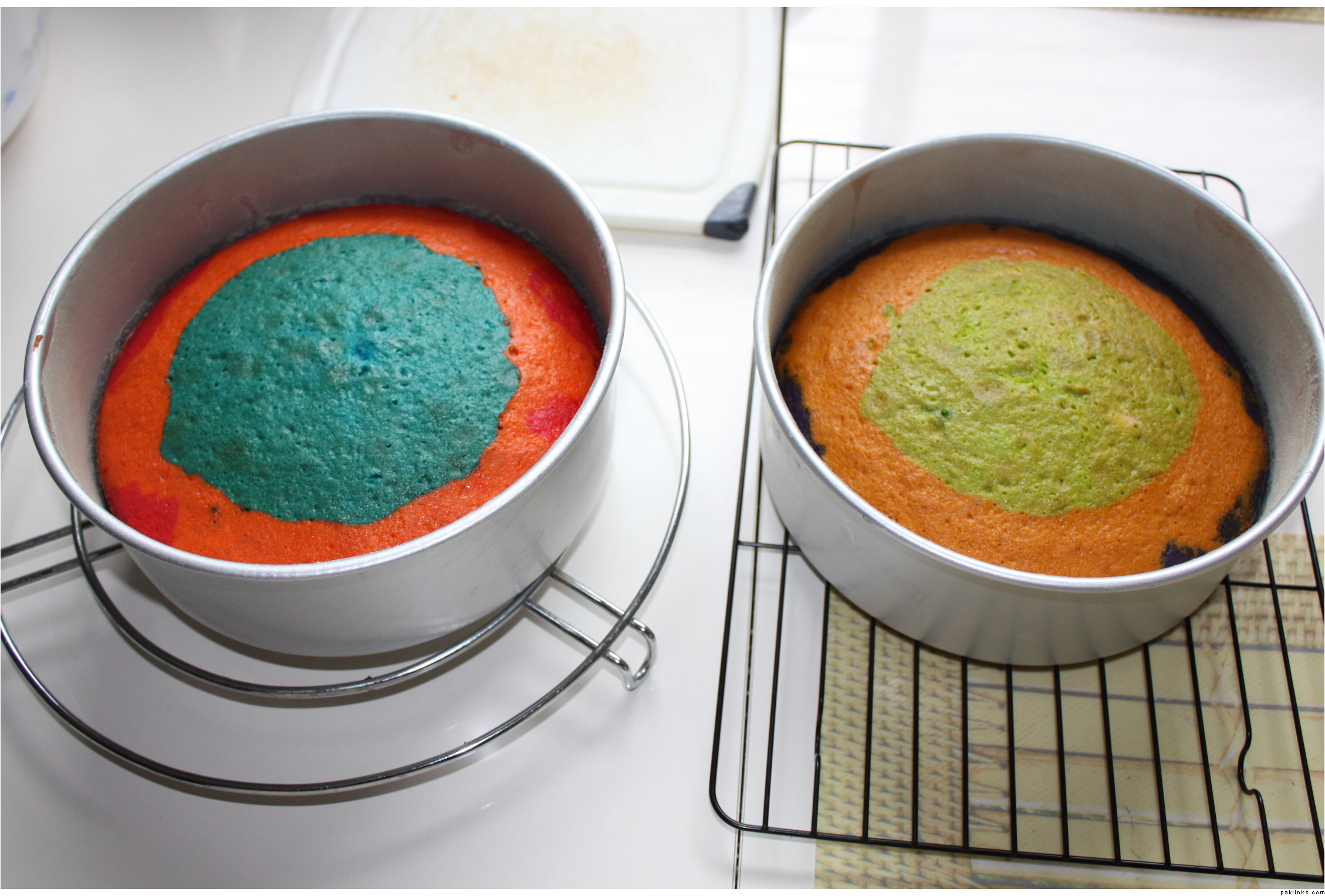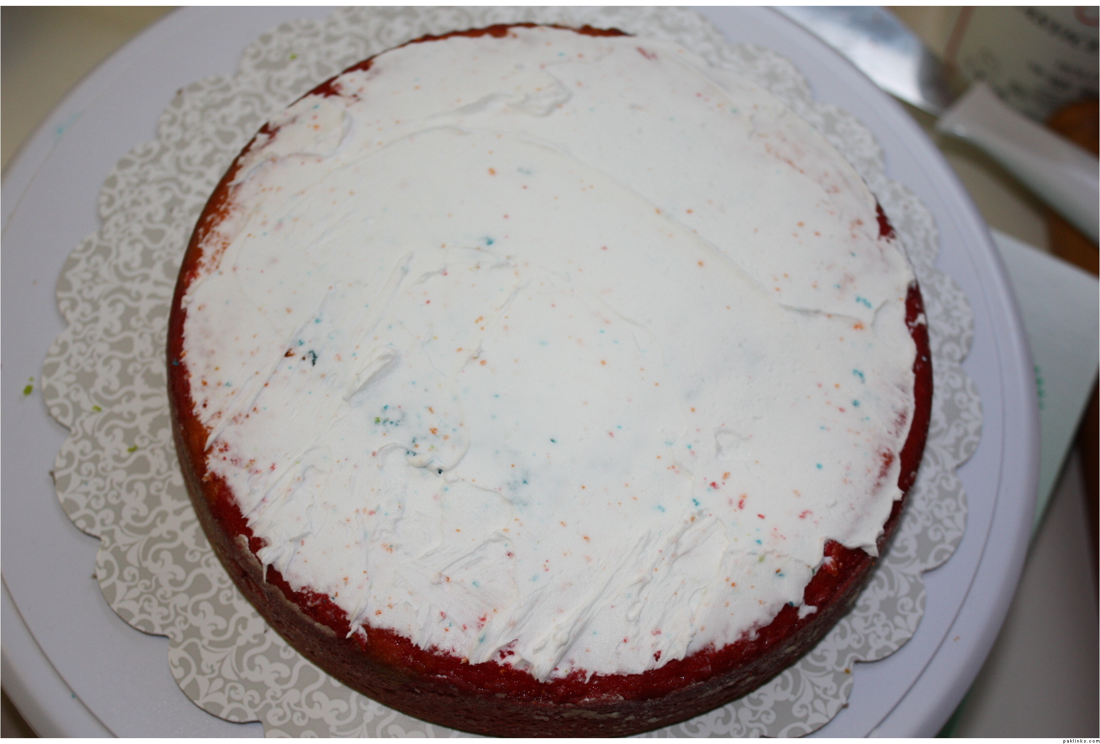 ok I made the rainbow cake instead of the red velvet cake as I did not have all the ingredients on hand for the red velvet cake.