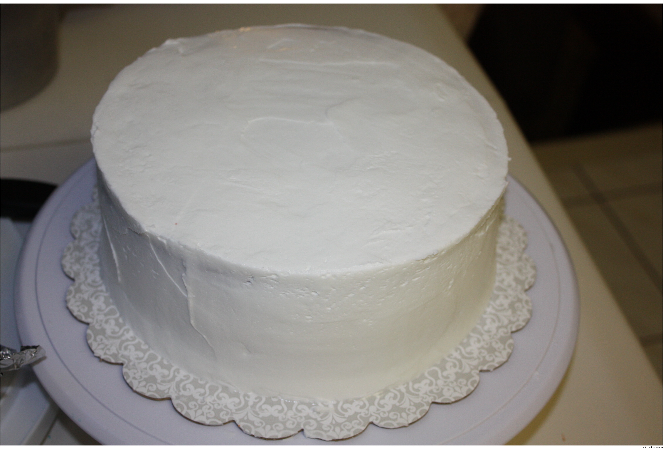Made another mistake at this point. I put the wrong tip on the icing bag, but I was too tired to change it. I meant to make large dots but ended up doing sea shells … again. Oh well.