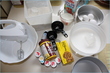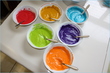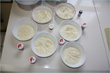 Divide the cake into six bowls. Dividing them into equal amount was difficult. I was confused if this was even the correct step.