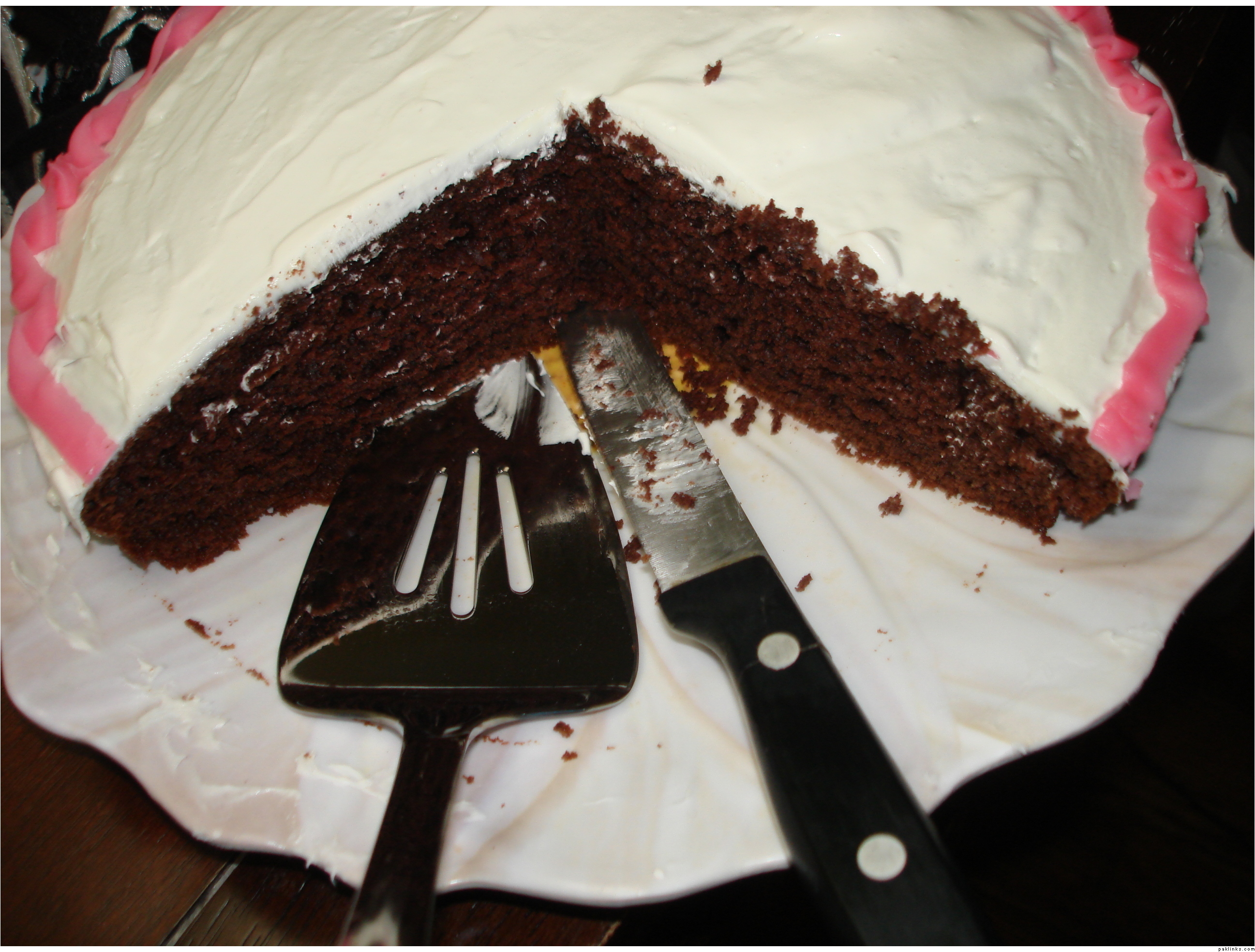 You can rotate the cake on the turntable. Like when I sawwed through the centre of the cake, the cake was spinning on the turntable. Again, the spinning turntable came in handy when I iced the cake.