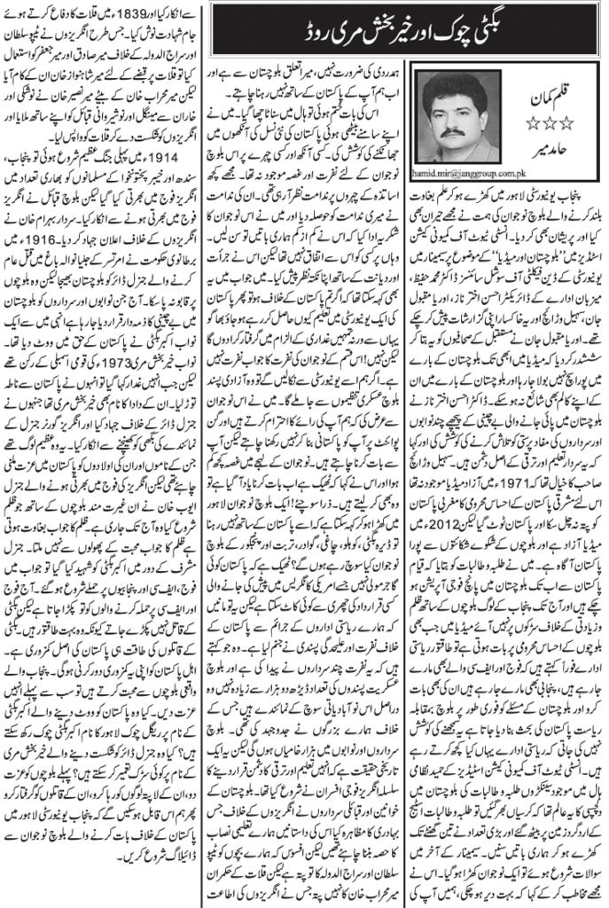 A similar list by Mir Mohammad Ali Talpur was published in 2008 wherein he rhetorically asked: a) Will the new airport in Gwadar be handed over to the CAA to ensure that a military base is not established there? b) Will Saindak’s unjust income-sharing formula be reversed to give Balochistan 48 per cent and the centre two per cent? c) Will they refrain from using Hingol National Park as a testing ground for the air force?