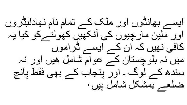 Some business men in kirachi refuse to pay taxes, they said if we have to pay bhata for security, why we need to pay taxes also. I agree with assesment. I wish only more people will follow the same logic. if govt doesn’t provide service, why feed the govt (taxes with out representation) If you showed politician who is in charge, they will eventually listen, maybe not.