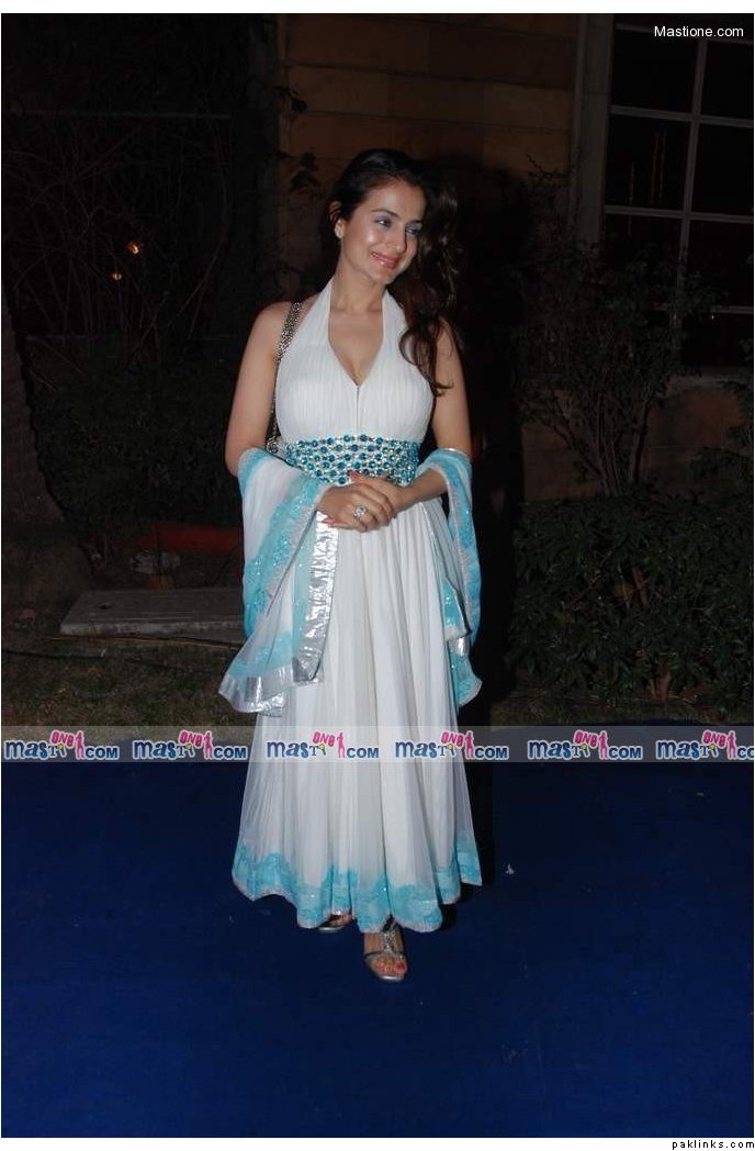 Amisha Patel looked stunning in a white gown accessorised by a pale wraparound.