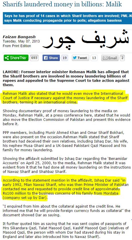 Ittefaq foundries was liened by the courts in 1997, during NS era (by design of course), in lieu of the Hudaibiya loan write off. That was followed by a swift stay order by their extended family, which stands till today. A 16 year old stay order....must be some sort of a record. And the Mehrangate issue was not about how much money was paid, but to whom it was paid, and how the election was engineered....otherwise, like you said, 3.5 million is pocket change for them.