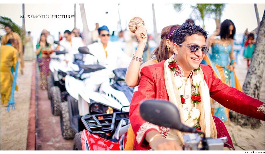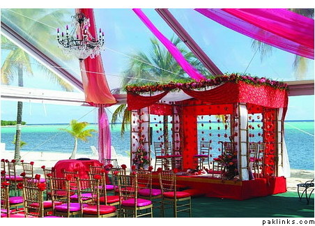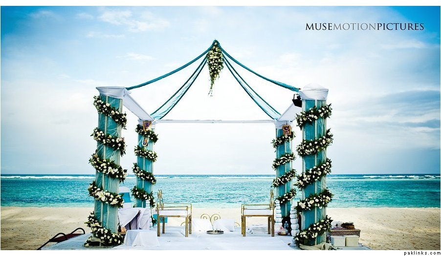 You can do lots of color and flowers, typical of a desi wedding, without all the heavy kaam and jewelry. it will feel tropical rather than the typical beachy wedding.