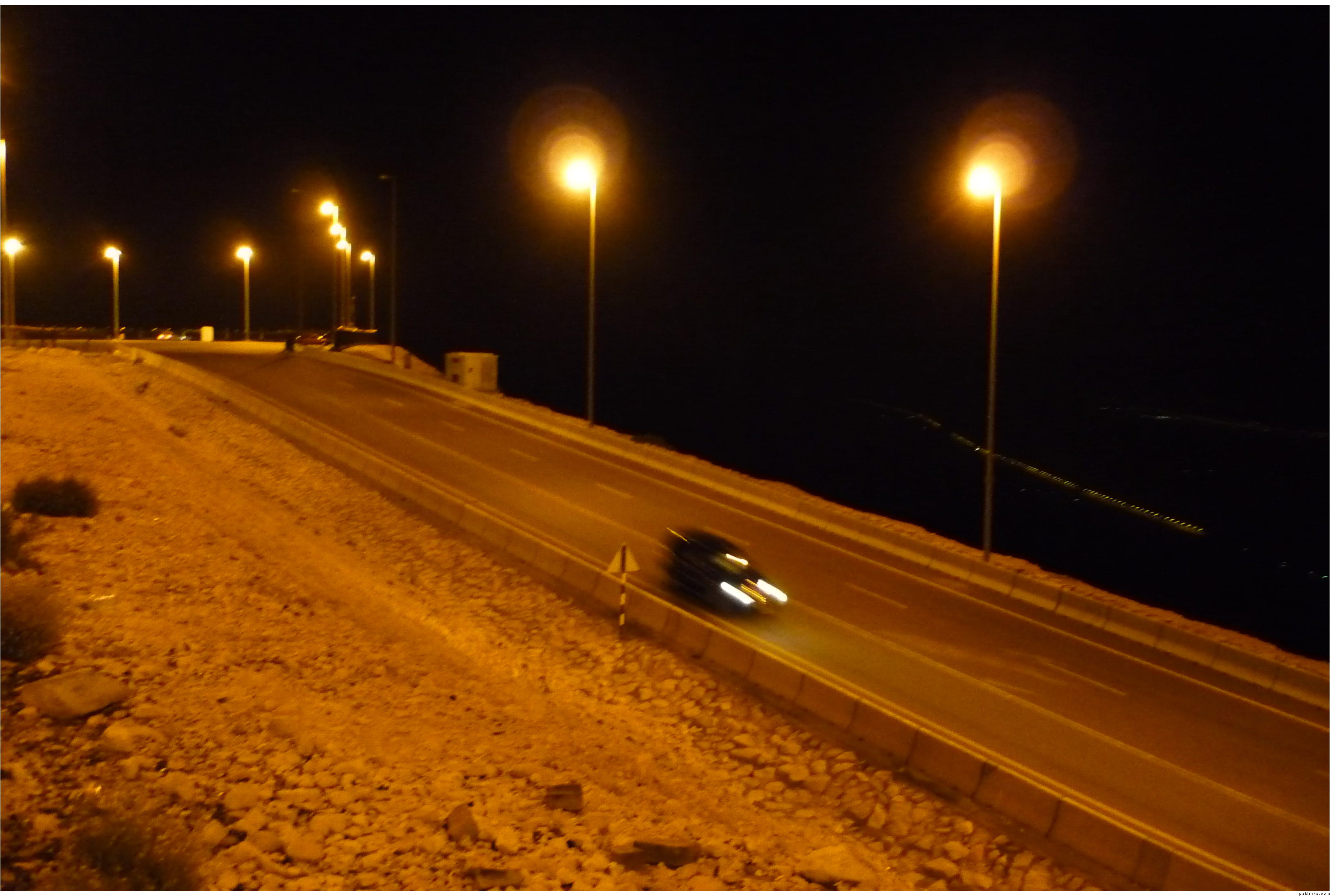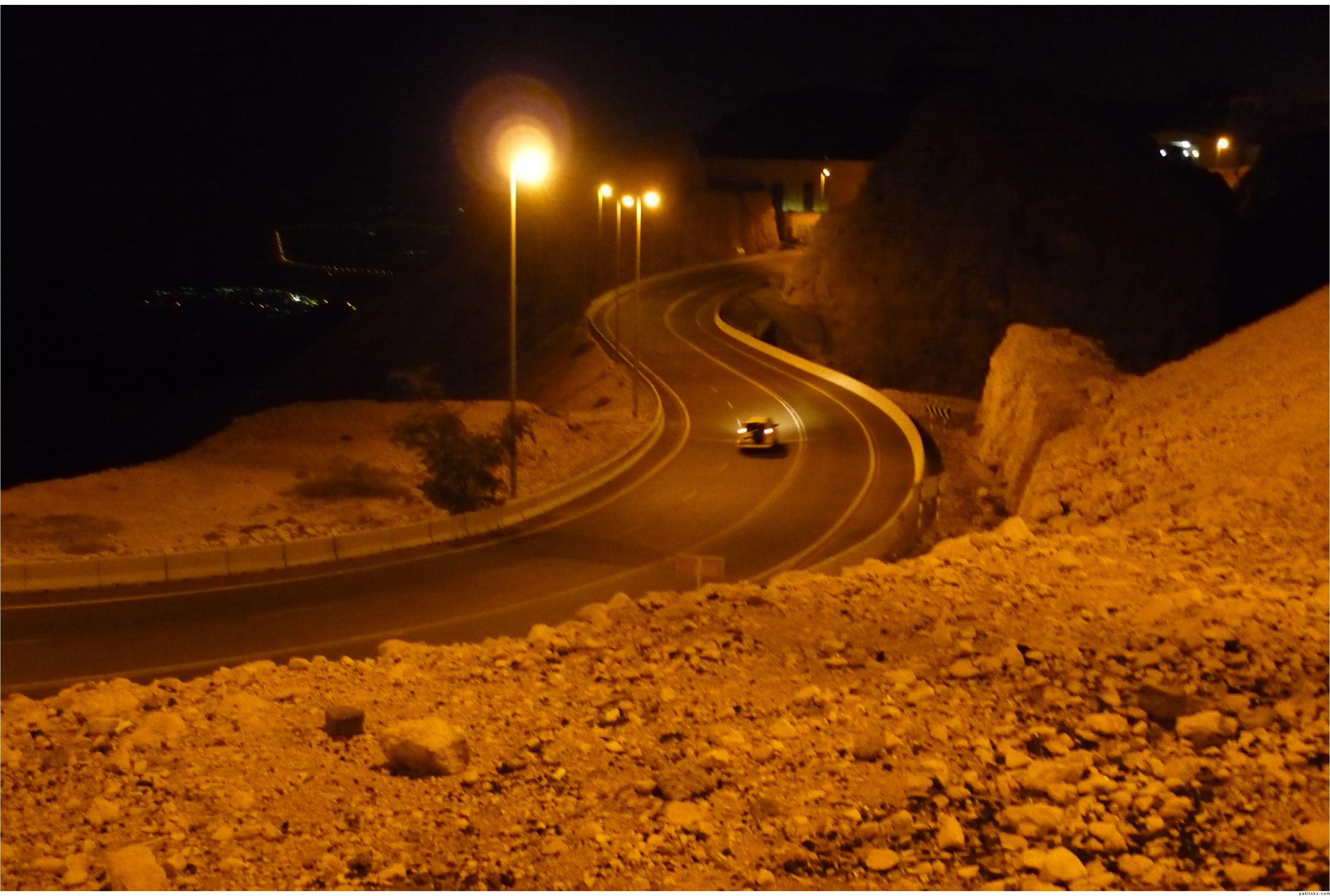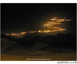 Jabal Hafeet looks like a lighted skyway to heaven at night.