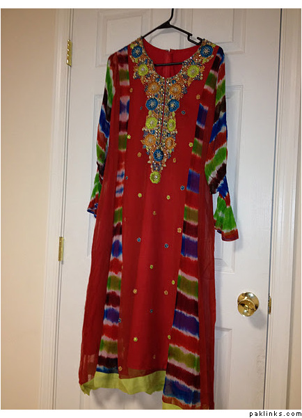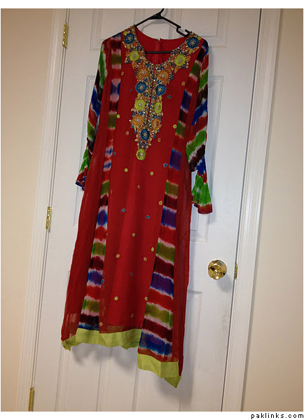 This this is small to medium. Will look good on someone 5’3 or taller. longer back and is very trendy and beautiful. Comes with contrast churidar pajama. $85 plus free Shipping, delivery confirmation, and insurance for limited time only. I must sell the remaining inventory from Eid.