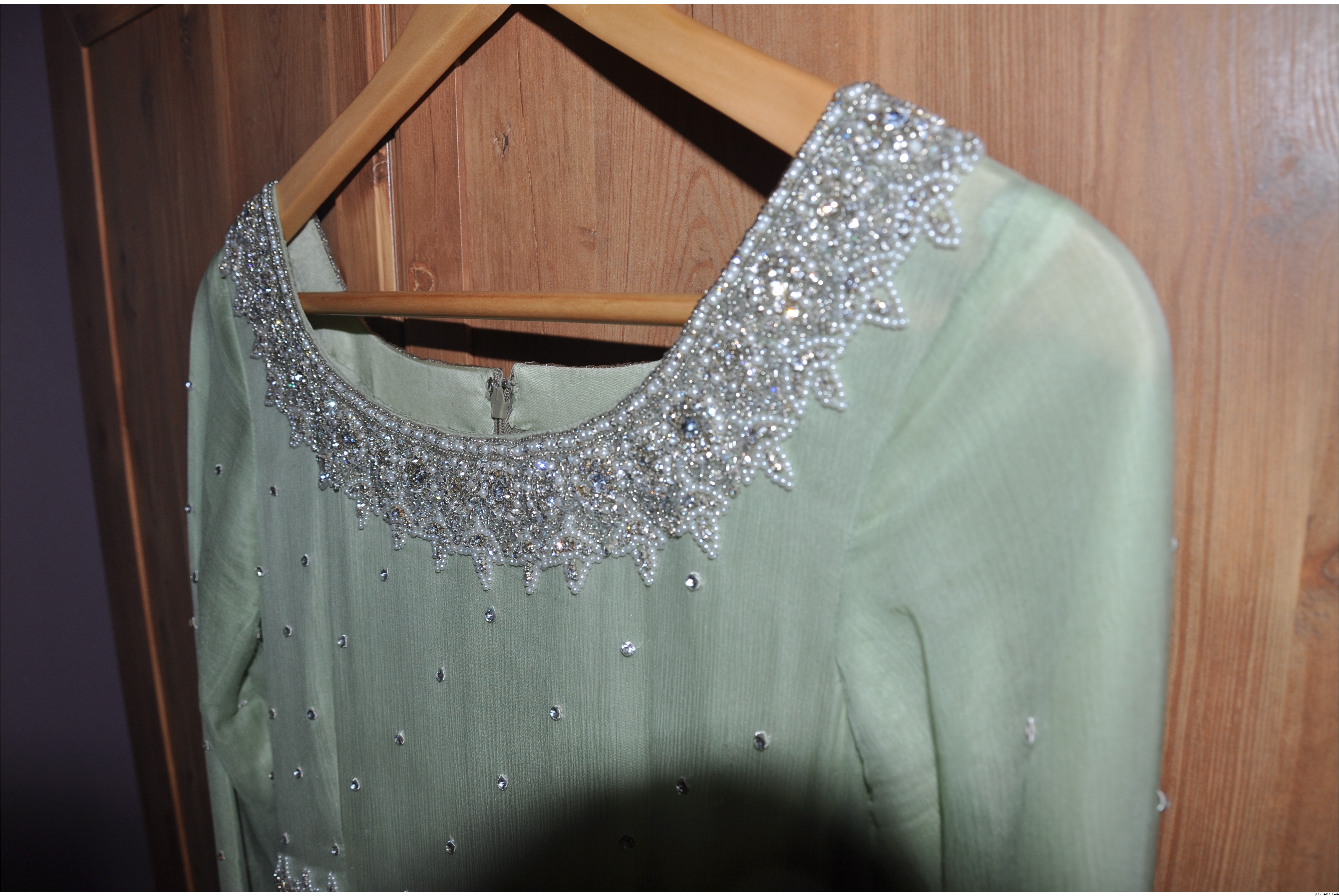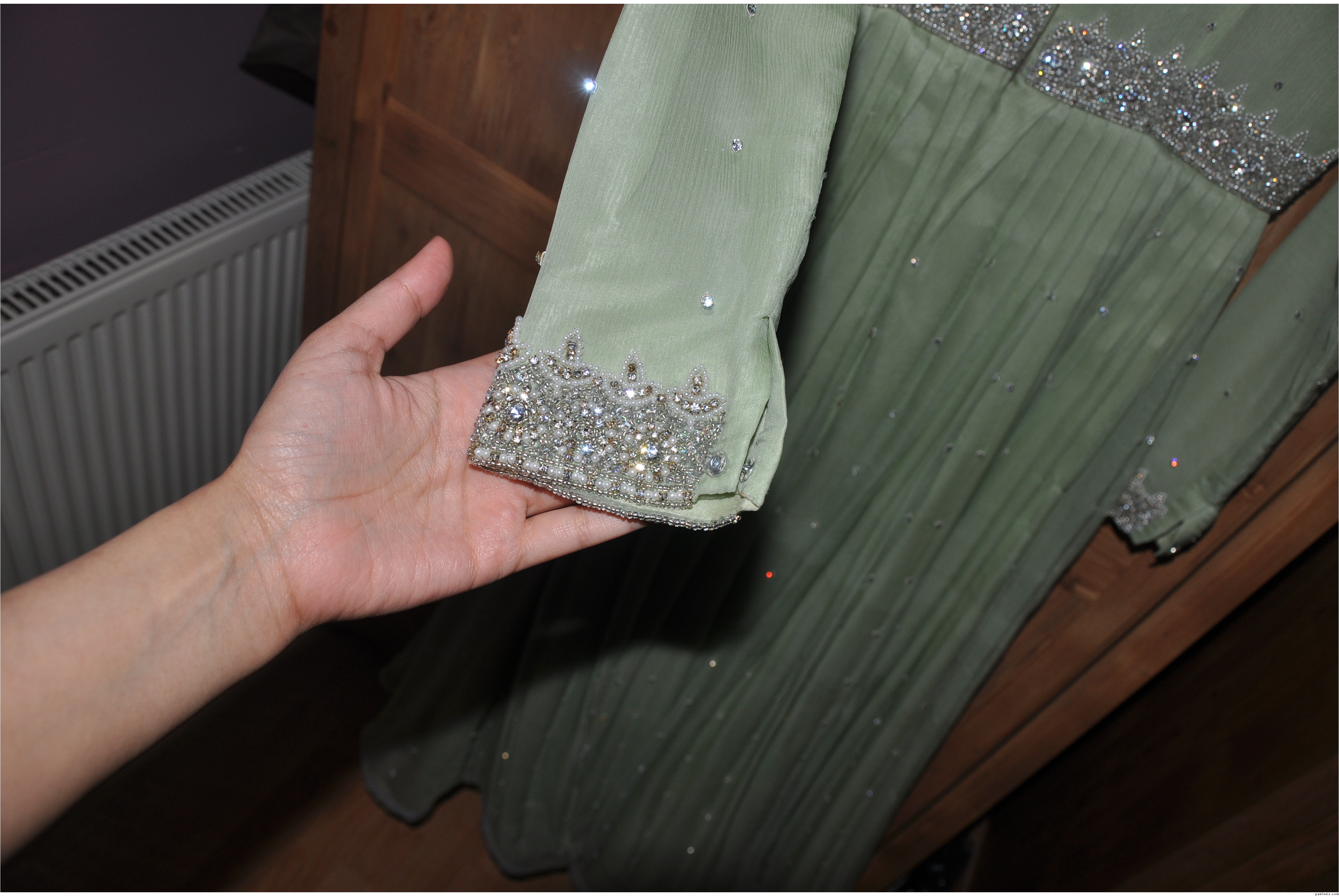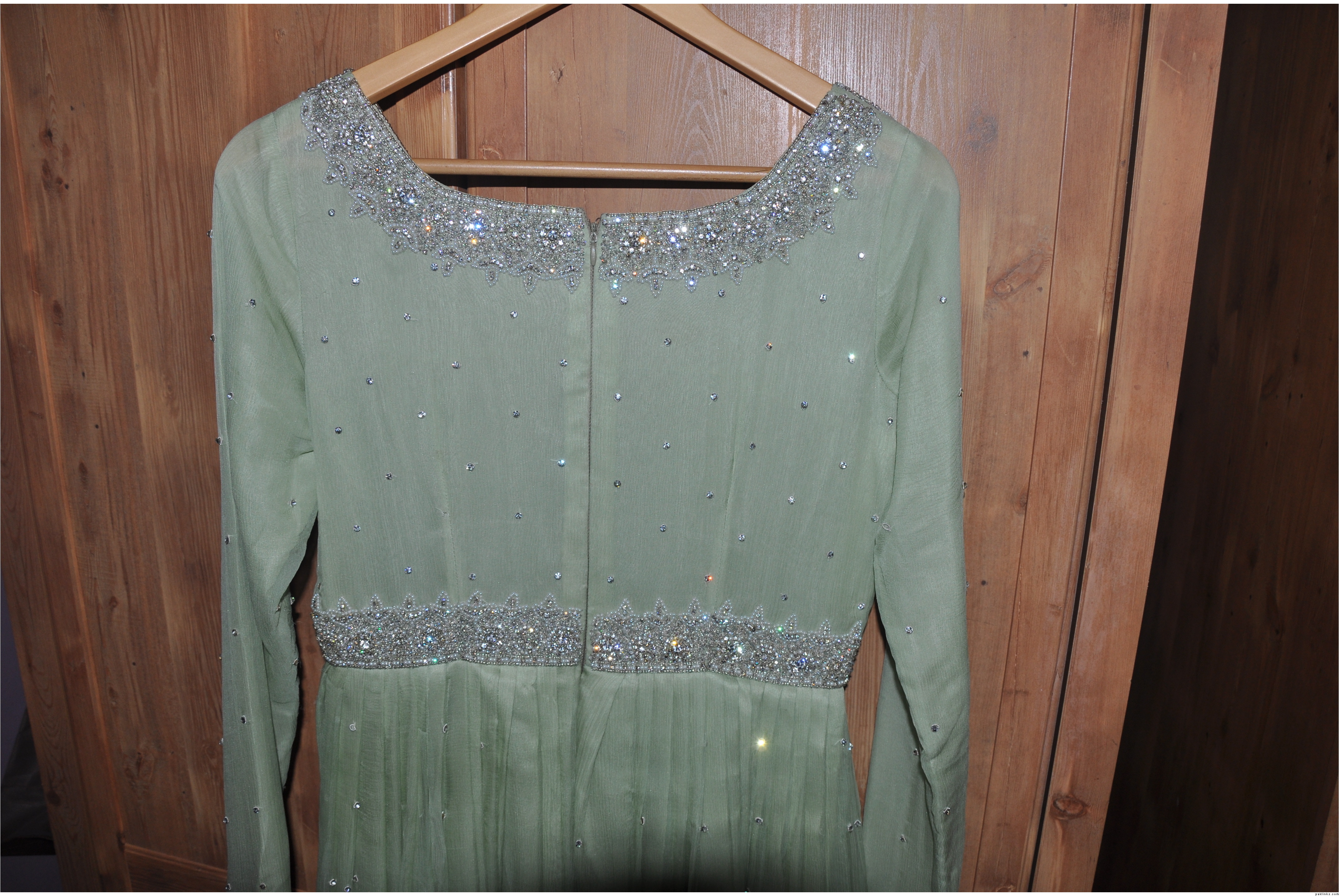 I wore this outfit only once for a few hours the work is done to a very high standard it includes bead work along with swarovski crystals. the outfit is a UK size 10-12 am selling for £150 (price negotiable) includes shipping